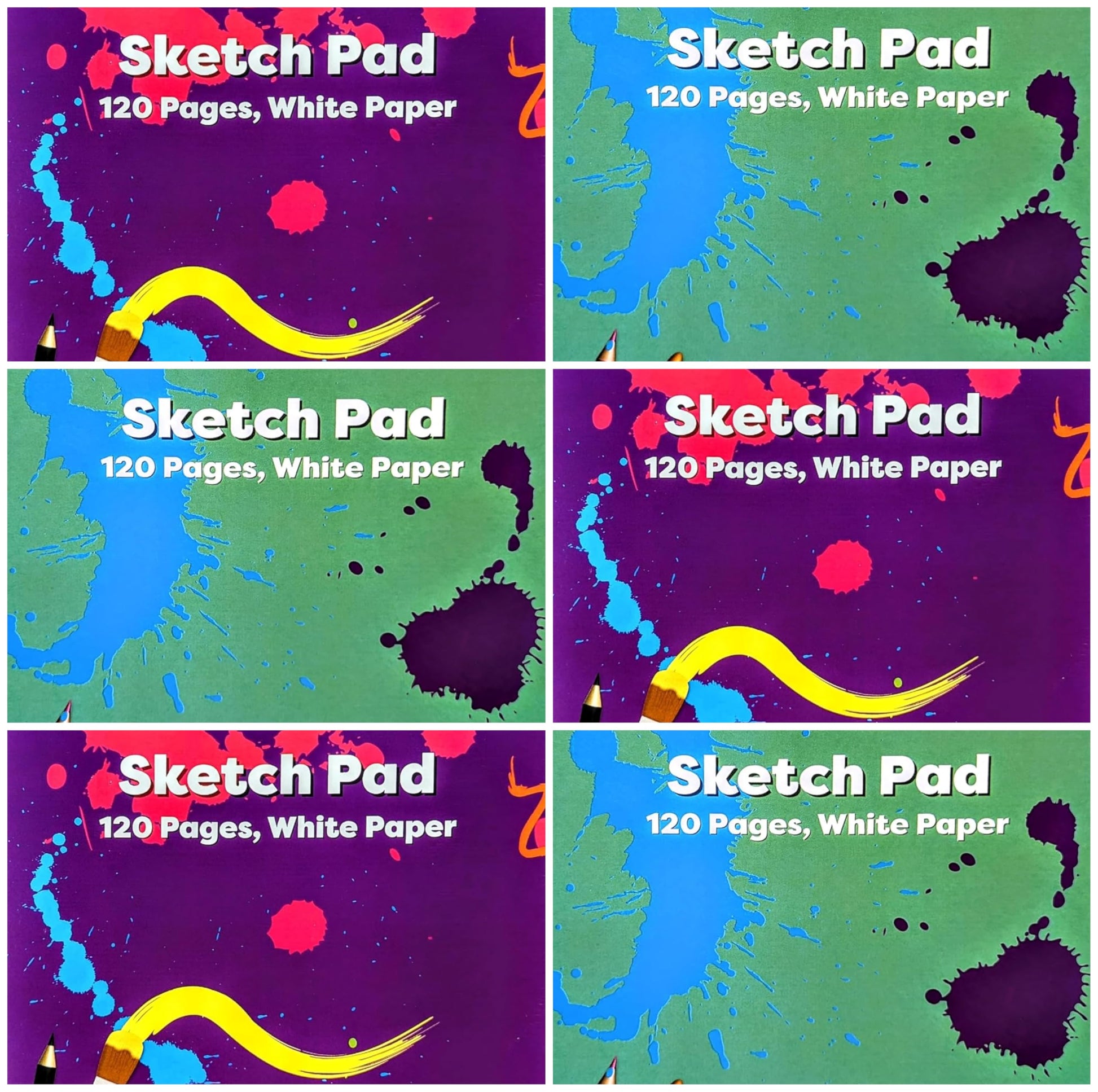 Details: 🎨 6 Pack A4 Artists Sketch Pads – 60 Sheets Per Pad This colourful set includes 3 purple and 3 green cover pads, each filled with high-quality white cartridge paper. Whether you're a student, hobbyist or professional, these sketch books are perfect for everyday creative tasks. 🖊️ 60 Sheets of 80GSM Paper – Lightweight yet durable, ideal for sketching, doodling, or outlining ideas. 📏 A4 Size – Convenient 210mm x 297mm dimensions, perfect for use at home, in school, or out and about. 🧑🎨 Suitable for All Ages – Great for young artists and professionals alike. 🖼️ Versatile Use – Use for drawing, designing, crafting, or creative journaling. Perfect for art students, classrooms, or gifting – this 6 pack of sketch pads is a must-have addition to any creative toolkit!